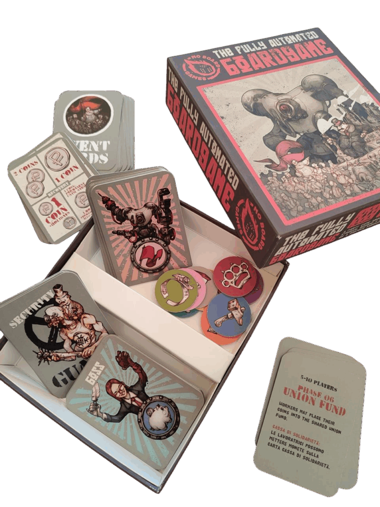 Starting in September 2025, we’ll also have copies of our last board game available The Fully Automated Board Game (30€)!